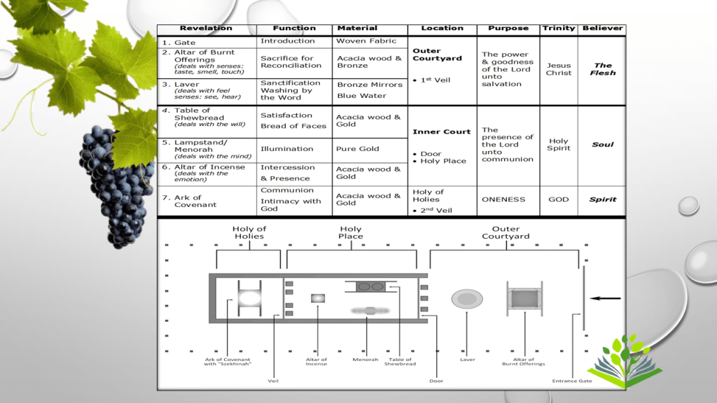 - I AM the true vine: John 15:1 (illustrated in the Old Testament’s Tabernacle Laver, abiding in the cleansing Word)