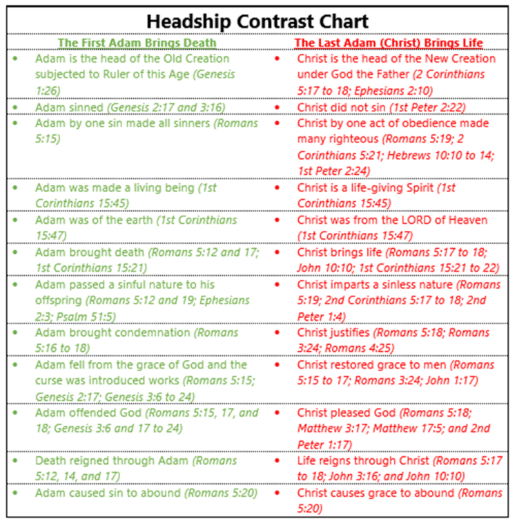 By way of contrast, we realize that headship determines what influences life. Romans 5:15 contrasts human nature as hereditary whereas Christ’s headship is called a free gift. A gift is not only given freely, it must be accepted to complete the transaction.